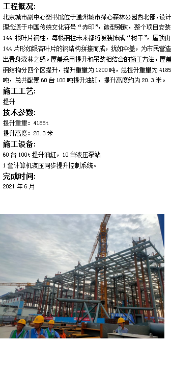 北京城市副中心圖書館鋼結(jié)構(gòu)屋蓋提升工程