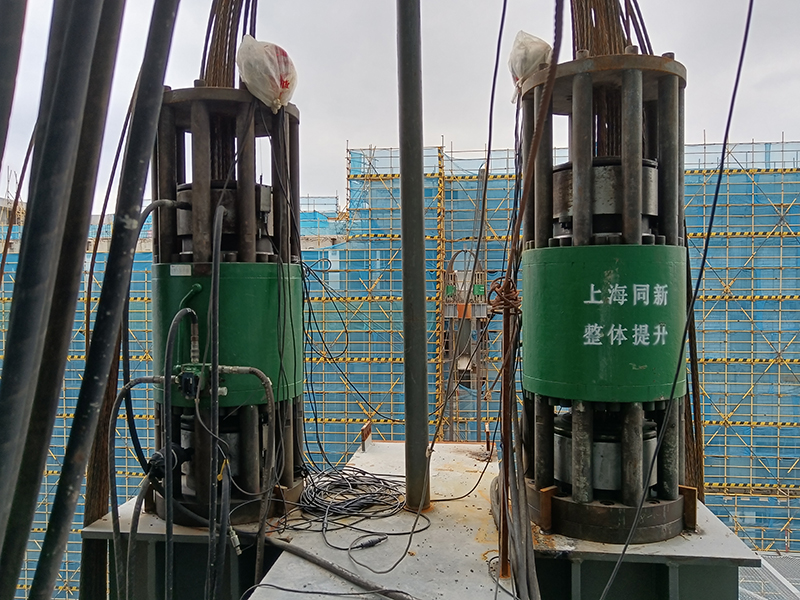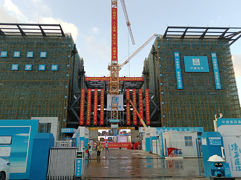 9月29日上午,通過(guò)全自動(dòng)化提升作業(yè),歷時(shí)6小時(shí),重達(dá)1500噸的福州公安局業(yè)務(wù)用房南側(cè)主體鋼桁架隨著8臺(tái)350噸提升油缸同步作業(yè)成功提升到45米的高度。本次提升的主體鋼結(jié)構(gòu)大跨度桁架主要分布在地上結(jié)構(gòu)的F7~F10層。其中,桁架層高度為36米,整體提升高度至45米(從地面提升至最高點(diǎn)),最大跨度為42米。項(xiàng)目團(tuán)隊(duì)對(duì)桁架結(jié)構(gòu)開展專項(xiàng)分析和反復(fù)調(diào)研論證,克服了施工場(chǎng)地狹窄、吊裝工況復(fù)雜、重型多層、超長(zhǎng)超重、鋼構(gòu)件量大等眾多不利因素,采用地面原位拼裝、整體液壓同步提升技術(shù),在確保桁架整體提升過(guò)程的安全性和穩(wěn)定性的同時(shí),也大大縮短了施工周期,降低了材料和能源消耗,助力綠色低碳發(fā)展。