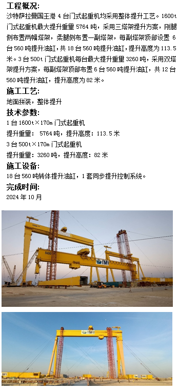 沙特薩拉曼國(guó)王港4臺(tái)門式起重機(jī)提升工程
