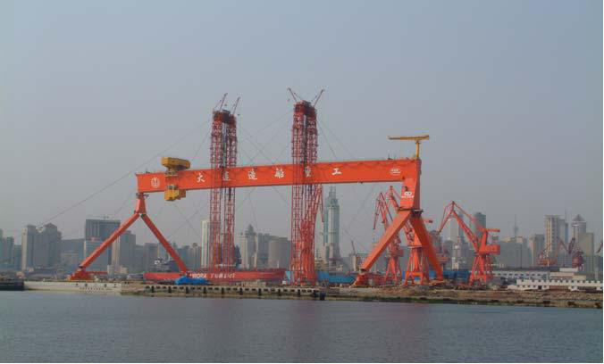 大連造船重工有限公司 600 噸龍門(mén)起重機(jī)整體提升工程