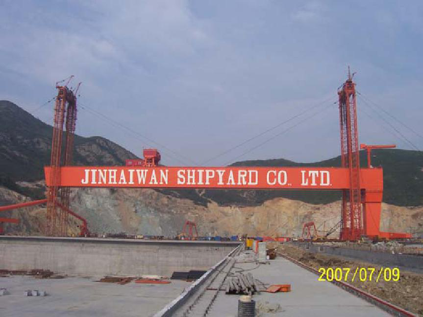 浙江舟山金海灣船業(yè) 900 噸龍門起重機整體提升工程