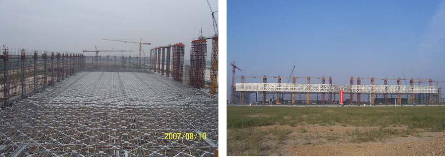 這是我們繼 1995 年完成北京首都國(guó)際機(jī)場(chǎng)四機(jī)位機(jī)庫(kù)鋼結(jié)構(gòu)屋蓋整體提升后,又完成的第二項(xiàng)機(jī)庫(kù)屋蓋整體提升工程。