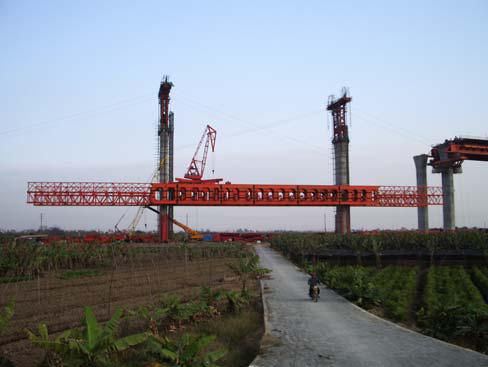 廣州黃浦大橋移動(dòng)模架造橋機(jī)整體提升工程 項(xiàng)目概況 廣州黃埔大橋兩臺(tái)移動(dòng)模架造橋機(jī),采取地面拼裝,整體提升到位的安裝工藝。 承擔(dān)工作 1、提升方案設(shè)計(jì)、提升支架設(shè)計(jì)與計(jì)算 2、提供整體提升設(shè)備(包含提升油缸、液壓泵站和計(jì)算...