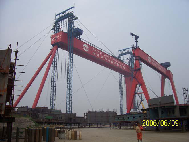 江蘇揚(yáng)州大洋船廠 300 噸龍門起重機(jī)整體提升工程