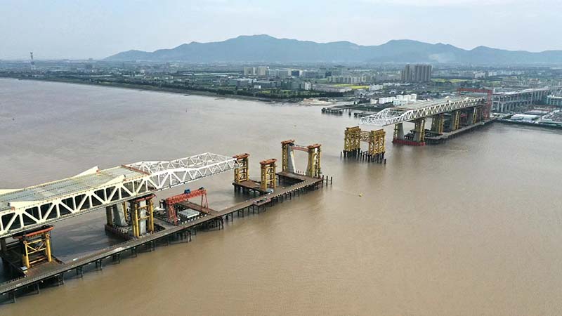 浙江瑞安永寧大橋主橋鋼桁架頂推工程