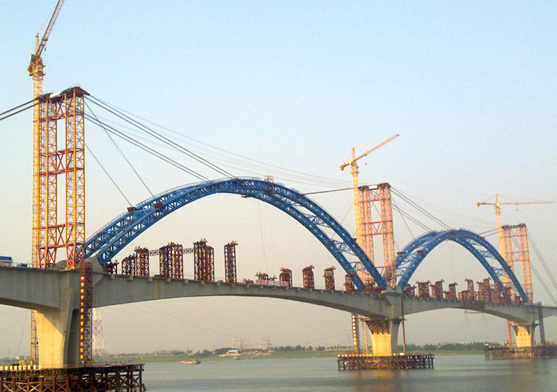 新建廣珠線西江特大橋主拱豎轉(zhuǎn)工程 項目概況 西江特大橋,是廣珠線上橫跨西江的特大型橋梁。主橋為兩跨跨度為 230m的下承式鋼管混凝土拱橋。每跨鋼結(jié)構(gòu)主拱重約 800t,先在橋面底面拼裝,然后豎轉(zhuǎn)到位。 承擔(dān)工作 1、豎轉(zhuǎn)方案設(shè)計 ...