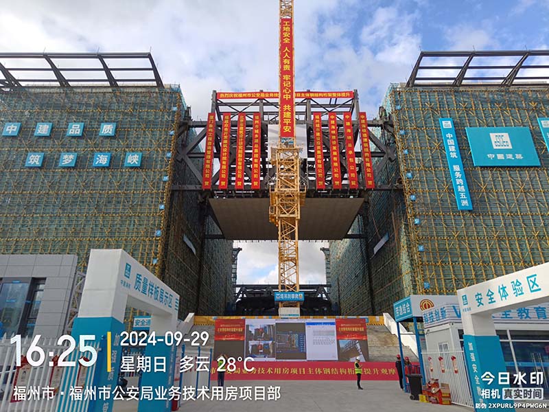 福州公安局業(yè)務(wù)技術(shù)用房主體鋼桁架提升成功就位