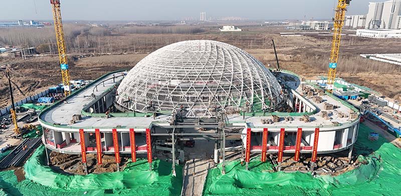 山東大學(xué)齊魯醫(yī)院穹頂鋼屋蓋順利提升合龍