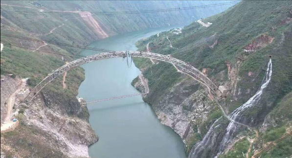 跨度342米,拱高82米,單邊豎轉(zhuǎn)重量2500噸