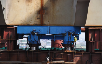 同步點數(shù):22點 設備使用:22臺1800噸頂推設備、21臺液壓泵站、2套控制系統(tǒng)