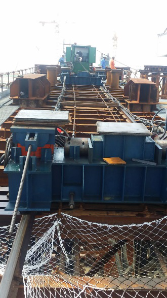 同步點(diǎn)數(shù):4點(diǎn) 設(shè)備使用:4套60噸滑移設(shè)備、4臺(tái)液壓泵站、4套控制系統(tǒng)