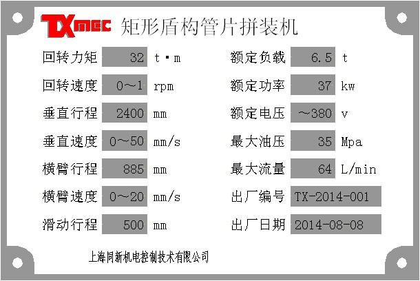 單臺機(jī)械手的性能參數(shù)見下圖設(shè)備銘牌所示: